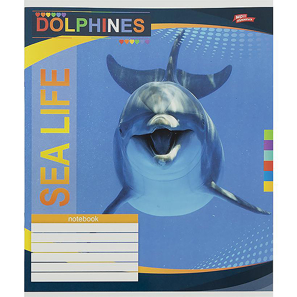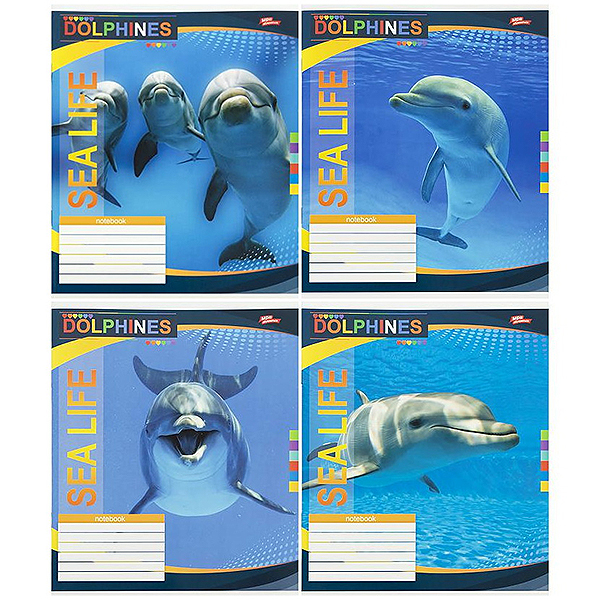 Шкільний зошит на 18 листов у лінію представлений вітчизняним виробником "Мрії збуваються". Виготовлений на офсетному папері щільністю 65 г/м² з білизною сторінки 100%, що забезпечує чистоту та яскравість записів. Листи мають добре видимі лінії та червоні поля. Обкладинка зошита виконана з глянсового картону, що забезпечує довговічність і захист. Щільність обкладинки складає 200 г/м². У серії "Морське життя - дельфіни" представлені 4 різні картинки, що надають зошиту унікальний і стильний зовнішній вигляд.