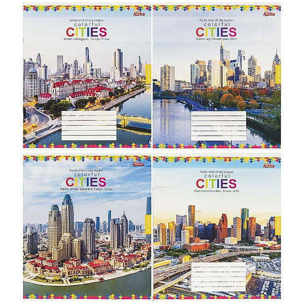Зошит шкільний 36 аркушів клітинка серія "Барвисті міста"